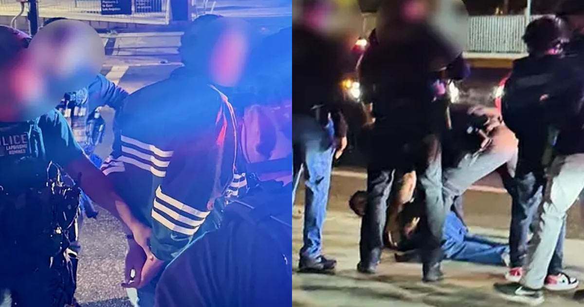 The photos, initially shared by the LAPD’s Narcotics and Gang Division, show officers surrounding Reiner as he is restrained on the ground during a struggle.