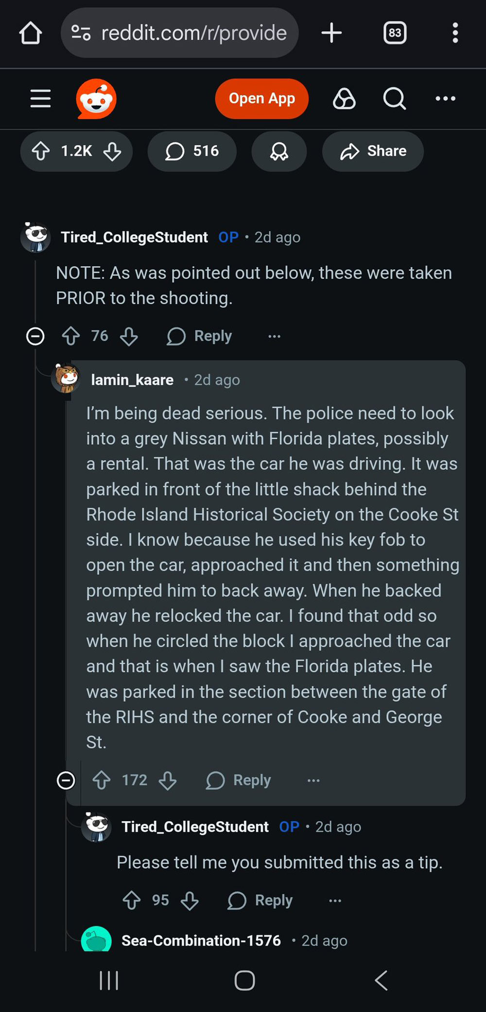 After images of the shooter were released by police, John uploaded another post stating that he had seen the same man unlock a grey Nissan with Florida plates near Brown’s campus.