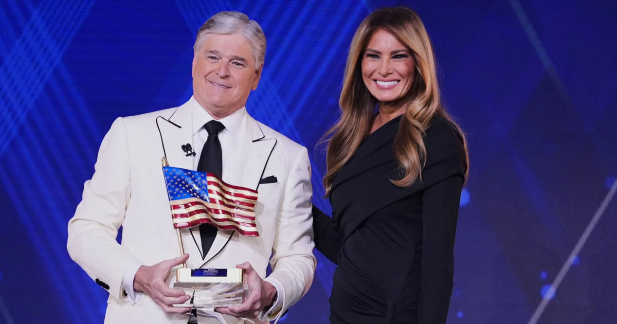 Hannity introduced Melania Trump as someone who “perfectly exemplifies that kind of quiet courage that makes this country so great” and is “reinventing the role of America’s first lady.”