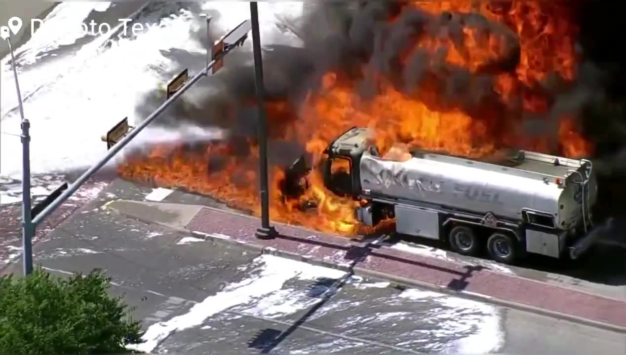 The tanker appeared to suffer a small fire which ignited the diesel it was carrying while traveling through DeSoto, a Dallas suburb.