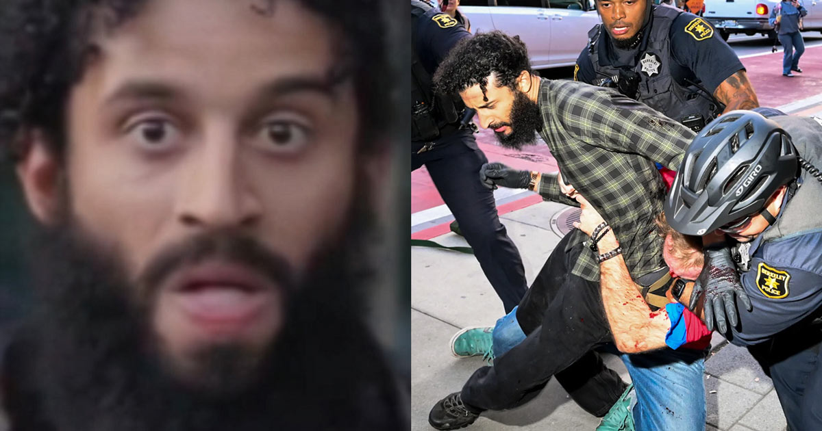 A violent “protester” named “Jihad” was arrested on charges of assault and robbery following a brutal confrontation at a Turning Point USA rally at the University of California, Berkeley.
