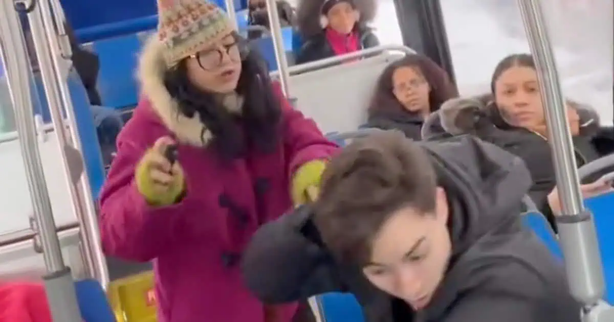 She repeatedly called him a “fascist” and a “racist,” attempted to grab his phone, struck him, and deployed pepper spray at least twice.