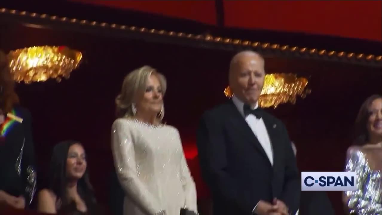 The video shows the president and first lady arriving at the Kennedy Center Honors to a standing ovation Sunday night.